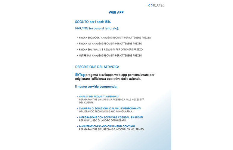 Le web app di BitTag sono soluzioni digitali avanzate, progettate per ottimizzare i processi aziendali e migliorare l’efficienza operativa.